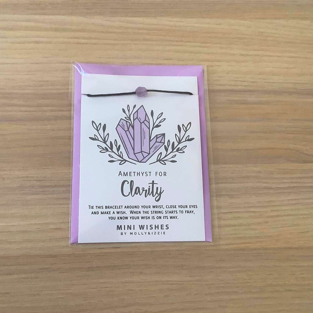Mini Wishe cords are 35mm in length and untied, so they will fit any size of wrist. Simply remove the cord from the card and tie to secure in place, then cut off the ends. They are presented on an smooth 350gsm A7 card in a clear cellophane pouch and each come with a little matching envelope.